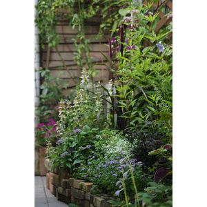 ◆いつもの箱庭 写真にはタグを入れてませんが... 手前に草丈の低いペンタスブルー,アゲラタムと白い雪華草... バックには背の高いヨツバヒヨドリ,キキョウにワルシャワニキ(クレマチス) その間には銅葉のミレットパープルマジェスティと観賞用トウガラシ 一番目立つのは盛りを過ぎているのに頑張っているモナルダ・プンクタータ