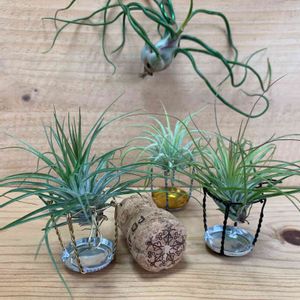 先月から初めての屋外暮らしを経験中の チランジアさん達 強風で飛ばされ3日間行方不明になっていたストリクタ😅 不注意で落として小さな子株を失くした ブルボーサ😂 初心者ゆえにいろいろやらかしますが、今日は久しぶりに部屋で遊んでもらっています🌿 スパークリングワインの栓のワイヤーに 座らせてみました💚💚💚