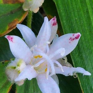 シロバナホトトギス(白花杜鵑) 別名:シロホトトギス ユリ科の多年草 花期7~10月 清楚な雰囲気を持つホトトギスです♪ 書いてあるものによれば、全国で自生が確認される品種とありますが、園芸種なのでしょうか! 何年も前、入笠山のゴンドラに乗った折、山野草の引換券をいただき、帰りにこの子を連れて帰りました。 それから毎年零れ種で増えています。今回の写真は昨年花壇に落ちて今年開花した株です♪