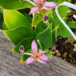 もう一枚 *ホトトギス* 🏷️金曜日の蕾たちに デッキにかかるように、咲いています。小さくて可愛い💠です。