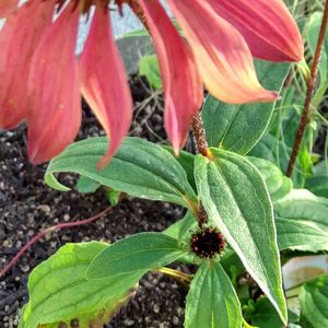 不思議な花 ユーフォルビアブラックバードと言うそうで、こちらもフラワーショップでおすすめしていただきました☺️ てっぺんに花が咲いてるそうですが花に見えない(笑) でも色がシックで素敵です☘️