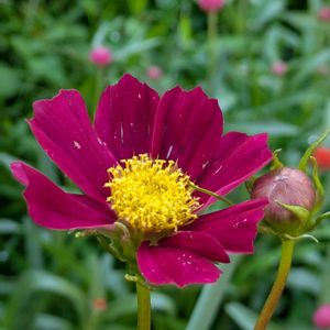 コスモス レッドベルサイユ 赤からちょっとワインレッドに。 グラジオラスは、咲き進みました。 薔薇の花にまで、コガネムシが食べに来るようになって、腹が立ちます。指ではじくけど、戻ってくるよね。