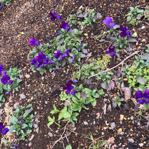 今日のお花🌸 タネから溢れたビオラさんたち この場所のビオラさんは紫ばかりですね💕