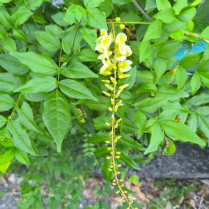 ナツフジ(夏藤) マメ科 分布…関東地方南部以西 花序の長さ15㌢程 お花の大きさ…1.5㌢程 ライムグリーンのお花が 爽やかです💚 8月の終わり.散歩道で🤳