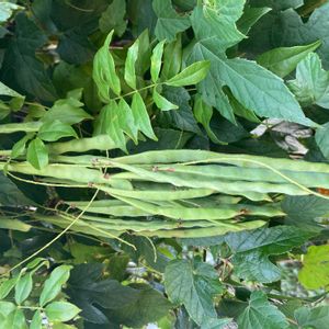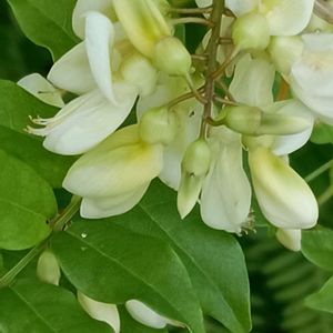 いつもの散歩道なのに初めて🔰見ました✨ 🔍️(あってるかな?🤔) ナツフジ(夏籐) 別名 土用藤 マメ科 フジ属(ナツフジ) 花期 7〜8月 分布 関東南部以西