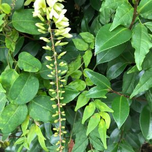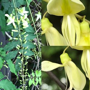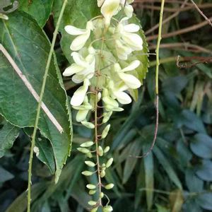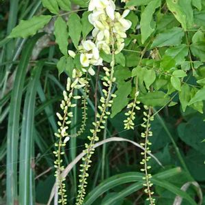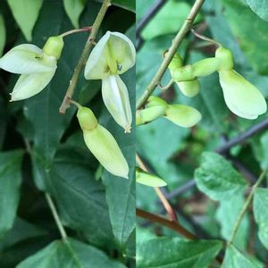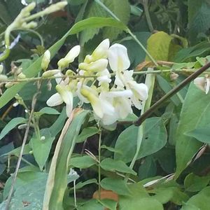 ツツジの葉に蔦が絡みつい咲いている フジみたいな花の名前を教えてください。 ナツフジ(夏藤) 和名は夏に花を咲かせることからドヨウフジ(土曜藤)と呼ばれています。 マメ科フジ属 ちゅうさんに教えて頂きました。