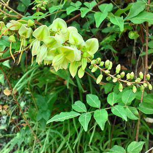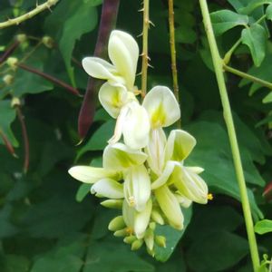 🌱ナツフジ🌱夏藤🌱 薄い黄色のお花が 可愛いです。 調べてみたのですが 名前が解らず仕舞いで😓 🍀宜しくお願い致します🍀 ちょこさん 名前を教えて下さり有り難う御座いました💚