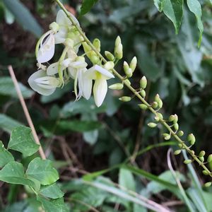 ナツフジの白い花が咲いていました。 夏の終わりを迎える花の少ない時節にも、ナツフジの白い花は、よく目立ちますね。 #ナツフジ #山野草 #iPhone7フォト #スマホ写真 #ご近所散歩 #加西市網引