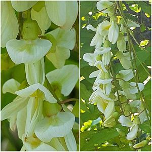 おはようございます🍀 お宝のお寺付近で、またまたお宝が見つかりました✨👑✨ 先日、仲良しのGS友さんが投稿していて、気になっていたナツフジです💛🤍💚 レモンイエローとライムグリーンを足して2で割って白を少し混ぜたような(細かっ😅😁)、爽やかな色で、とってもうっとりする美しいお花です(〃∇〃)💗 見ることが出来て、とっても嬉しいです🥰 お宝のお寺周辺は、本当にお宝がザクザク埋まってます(*^ー^)ノ✨👑💍💰️✨ ナツフジ(夏藤) マメ科 フジ属 (ナツフジ属) 和名は、藤に似ていて夏に花を咲かせることから 別名 ドヨウフジ (土用藤) 夏の土用の頃咲くことから