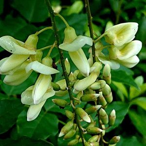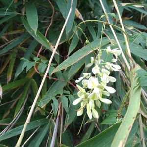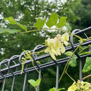 ナツフジ 夏に花を咲かせる淡黄白色の小さなフジ マメ科フジ属 つるの巻き上がる方向は左巻き(S字巻き)