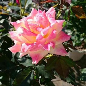 花が開き始めたので✌ピースの時にパチリ❗ わかっているのにまた臭いを嗅いで後悔しています