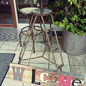 Cafe ファンファームの店頭にアンティークなテーブルセット置きました 何を並べよう…