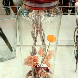 一つ見本を作ってみました ガラスの透明感とナチュラルなドライがいい感じにマッチしてます! ちなみに、この瓶はパスタを入れるのに使うヤツです(笑)