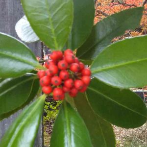 《ミヤマシキミ》でした。 先日、自分で別場所のミヤマシキミを投稿していました。 恥ずかしい(*/□\*) 投稿されているものを拝見すると、若干違うような気もするのですが… 《ピラカンサス》で合ってますでしょうか?