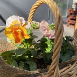 こんにちは〜 今日は暖かくポカポカ☀️ でも風が冷たいです そんな中、庭仕事していたらピンポーン 花友さんから🧺🌸🌼 ビオラとパンジーミニが届きました❣️カゴ付き😍 嬉しい〜❣️ 急いで植え替えして写メ📸 ちょっと伸びていたのでピンチしてあげました😊 2枚目は名前🪴 3枚目は今、我が家に咲いている花 4枚目クリスマスグッズ飾りました🎄🎅