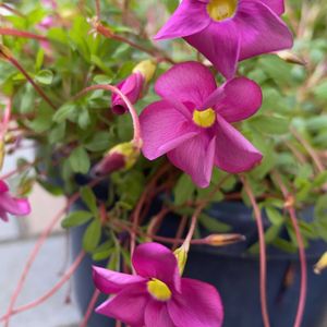 こんにちは〜 🪴オキザリス桃の輝き 先日、花友さんから頂いた時に間違えて桃の花とコメントしてしまいました🙏 🪴昔から我が家にあるスプーン咲の菊 🪴名無しの薔薇🌹 🪴カランコエ色づいてきました💕 🪴そして寄せ植えした葉牡丹とビオラたちです