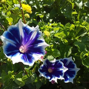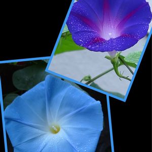 水色の西洋アサガオ💙 紺色の琉球アサガオ💙 コラボして、咲いてきました‼️