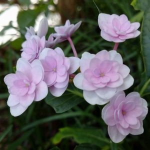①山アジサイ 星のしずく 花弁を拡大して良く見ると細かい星のしずくがちりばめられています。 ②リナム(アマ) ③アジサイ三河千鳥 ④アジサイ雨に唄えば ⑤カワラナデシコ