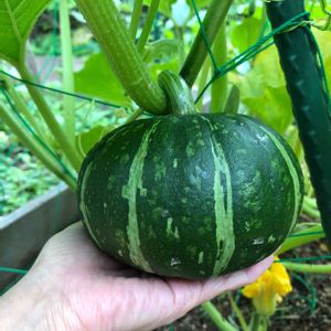 もう収穫しても良いのかなぁ?? ウチのミニかぼちゃ🎃 収穫時期は500gになったらって書いてあったけど、計るのが難しい(笑)