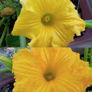 ミニかぼちゃ くり姫👸👑*゚ 上が雌花で下が雄花💛 開花後40日前後(500g)で収穫期だそうです😋 美味しく食べれると嬉しいです😋🎶 🏷月曜日にビタミンカラー💛
