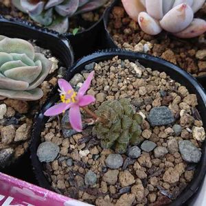 こんにちは。 冷たい雨がしぐれてます! そんな中、姫路植物園から帰宅しました🤣 これだけお迎え😉 1つ、100〜300円で籠へせっせせっせと、、 旦那が選んてくれた下3つと、アナカンプロセスのラゴブス。 エケは同じように見えるんやろなー。すすめてこなかったわ🤣🤣 欲しかったミラーボールと姫明鏡、お安くて嬉しい😉 羊角は、フェルニア属と書かれてるけど、ピアランサス属かな?