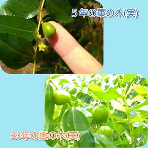 棗です。 棗だいすきなの😂 今回は、実家にある23年ものの木に 実ってるナツメと 長男の誕生記念樹として ひこばえを貰った5年目ものの木に なっている 同時期くらいに成り始めた実を 比較してみました!✨ 少し5年目のほうが数日遅れで 実が付き始めたものの この差!! 肥料とか手間かけてないのに 既に美味しそうなマルフォルムが堪りません…🤣❤️ 数十年後にはうちの庭にあるナツメたちも立派な実をゴロゴロつけてくれるのを 夢見てます…🤭🌼✨