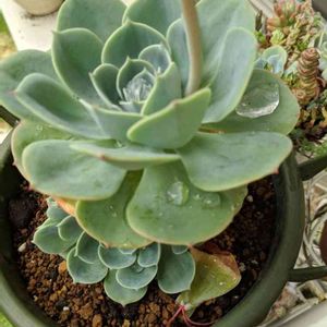 黒法師とかレモネードとか緑色(笑) 連日の寒さで死なないか心配💧 バーナティが虫みたいでたまにビックリするけど可愛い☺️ 葉挿し🌱の七福神 母葉が枯れてきました☺️ マーガレットレッピン葉挿しも順調です✨