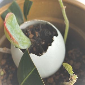 七福神初めての葉挿しそして超発根 根っ子ボウボウでした 嬉しいので青い卵(全然青く写ってナイヤ)の殻で鉢上げしてみました ハマボウの挿し木諦めていたけれどここに来て2本(3本挿シタ)新芽がキラリ輝いてキタ〰(✪▽✪*) ・。嬉シイカラ今日ハ✧メネデールウスメエキデ🍸カンパイダ🚀
