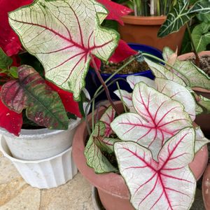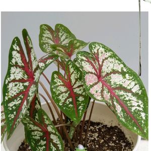 カラジューム 💚💗💚 サトイモ科 カラジューム属 和名:ハイモ属 白鷺、ニシキイモ(錦芋) 🔹葉の模様が美しい💕👍️ 🔹涼しげで、トロピカルなイメージですね🥰 花言葉:「喜び」「歓喜」「さわやかさ」