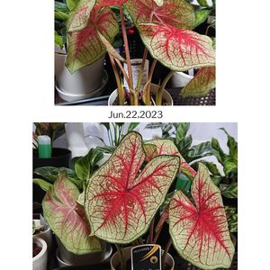 最近、仲間入りした カラジューム🌱 キレイな色~✨ 新芽も沢山、出て来てる🥰 📷️6/22