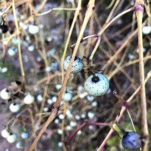 野葡萄の瑠璃姫さん🍇 可愛い❣️可愛い❣️💖 これを見たくて パーゴラを作ったんだもんね😆 野葡萄を始めこそ反対していたダンナもパーゴラさえ作ってしまえば こっちのもん😁 あちこちに こんなにも可愛い実がなってます🎵