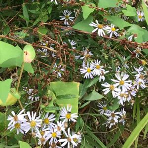 野菊(ヨメナ) おはようございます。草むらに咲いてました。置かれた場所で精一杯咲いてます。最近楽しみにしてたお花の場所が潰されてマンションが建ってしまったりとがっかりする事も多いいのですがこうして見つけると嬉しいです。世の中も何だか物騒な話題で不安です。何時迄も草花の咲く平和な世界であってほしいと願いますね🌺🌸