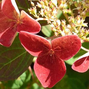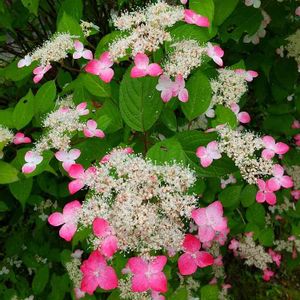 山アジサイ紅(くれない)です。花色は白から赤に変化します。