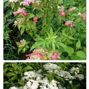おはようございます☀️ また雨になるのかな⁉️ 白いあじさいは名前がわかりません😵 紅は伊那谷で発見されたんだそうです
