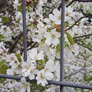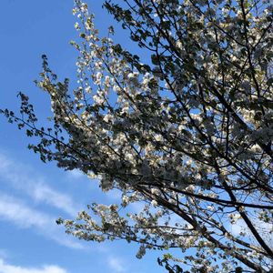 晴天 庭の真ん中に山桜…花が咲き始めて2年目の我が家の山桜…ボチボチちりはじめました(*≧∀≦*)