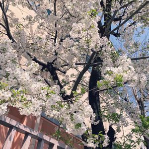 こんにちは🌞 久しぶりの自宅の庭です🏠 蕾だった桜🌸が満開です✨ 足元には黄色いチューリップも待機🌼 1メートルもない小さな木です♪♪ どのお花も下を向いて♡
