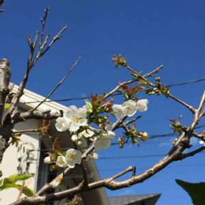 元々、さくらんぼだった木…接ぎ木の元が残り…山桜が咲く様になり…今年は珍しく沢山の蕾を付けています!今年は良い事あるかな〜〜😁✨🌸🌸🌸