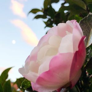 夕方 母を送りがてら実家🏡へ。。。🚗💭 私のお気に入りの…山茶花(*´꒳`*)🌸🌙 《オツキサマトコラボ♥︎︎∗︎*゚》 ずいぶん前に父が植えた思いでの🌳デス!
