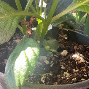 こちらもツボミ! しかも土から出てすぐのとこに。 ツボミ摘んだほうがええんかなぁ。 植替えたろと思ってたのに、ドンドン成長するから、どーしよかなぁ。