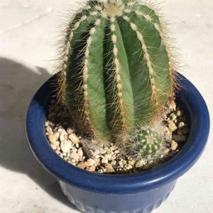 サボテン エリオカクタス 水切りでかなりシワが入ったので たっぷり水遣りし日陰で休養。 今日は曇りなので明るい場所で 風通ししたのでシワが消えました。😆 身割れはしてないですよ〜🤗