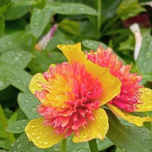 照りつける真夏の日射しにも負けないポーチュラカ 毎年お迎えする「やえぽー」さん。黄色とピンクが元気です🌼白はまだ咲いていません😂絞りも好きです😍🎵