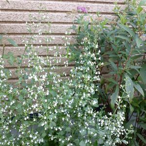 カラミンサ ネペタ 30センチになりました。 夜のベランダにて。 部屋の明かり程度で細かい部分までよく写りました。 日差しのあるところでは、反射がきつくて葉や花の形がわかりにくかったです。 葉をこすると、ミントの香りがします(^^)
