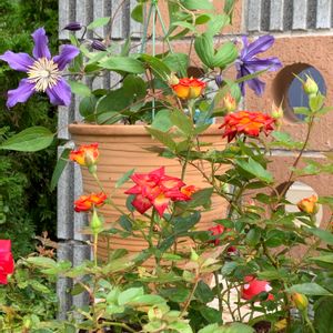 ✽.。.:*・゚ バラとクレマチスの共演✨🌿✽.。.:*・゚ ✽.。.:*・゚ ✽.。.:*・゚ ✽.。.:*・゚ ✽.。.:*・゚憧れでした💕 バラは去年迎えた、人生初の🌹。ミニバラだけど… 思い入れがあるんだなぁ💗 花数が増えて嬉しいです♡(ღ˘⌣˘ღ) 2021.7.15 追記 ミニバラは、トロピカルサンセット🌹かもしれない。 GSで出会えた🎵