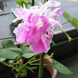 変化朝顔 親牡丹 品種名 青斑入抱葉淡藤牡丹咲 九州大学系統415 本来は廃棄ですが、きれいなので育ててます。 しかし。いきなり暑くなりました(TT)