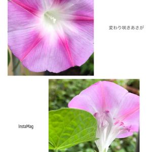 おはようございます☀️.° 太陽がギラギラと 変わり咲き朝顔の正面からと後ろから。 後ろの飾り花がとっても可愛い💗💗