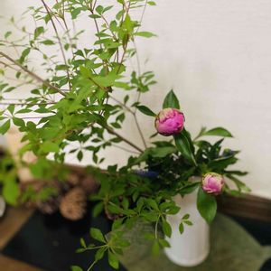 どうだんつつじと芍薬 トラノヲを生けました🏵 芍薬が咲くのが楽しみです🌸