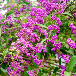 今日のお花 🍀ムラサキシキブ シソ科 ムラサキシキブ属 コムラサキよりもやや大きな実をつける紫式部 初夏の花から秋の実になる変化が美しい!