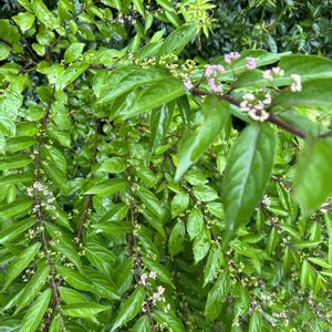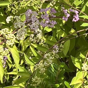 台風🌀が去って庭に出たら レウコフィルムが満開でした 紫式部もたくさん実を付けて可愛いな