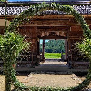 タカノハススキ 国内最高気温41.2度‼️隣の丹波市で出たそうな💦 そんな中、その丹波市鴨神社に茅の輪くぐりに出かけていましたよ(⁎×﹏×⁎)☀ 普通、夏越しの大祓といえば6月30日なのだけれど、ここ鴨神社では毎年7月30日に、境内で育てておられるタカノハススキ(ヤハズススキ)でお作りになられる🟩 作られた茅の輪はすぐに枯れ枯れになっていましたが、夏の穢れをお祓いするために!左!右、左と作法通りに3回潜りました🙏 場所は変わって慧日寺に詣りますと、ちょうど茅葺きの葺き替えをされていました♬ 5枚目は吹き替えの終わった本堂の屋根を下から撮させていただきました🙏 厳しい暑さが続きます☀ となたさまもご安全に‼️