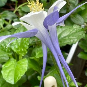 💜西洋オダマキ💜🍃 朝から強い雨☔ 少し涼しくくらいの気温ですねー ベランダでは癒しのオダマキさん、 まだ頑張ってます ①この姿、可愛らしい🥰 蕾、色付く前から「距(キョ)」がしっかりあります ②かなり小さめだけど、お花も1つ開花 ③お花を正面から ツンと突き出た蕊が噴水みたい ④お花を横から 後ろに突き出たクルンとした「距(キョ)」が長くてステキ💓 🏷️金曜日の蕾たち